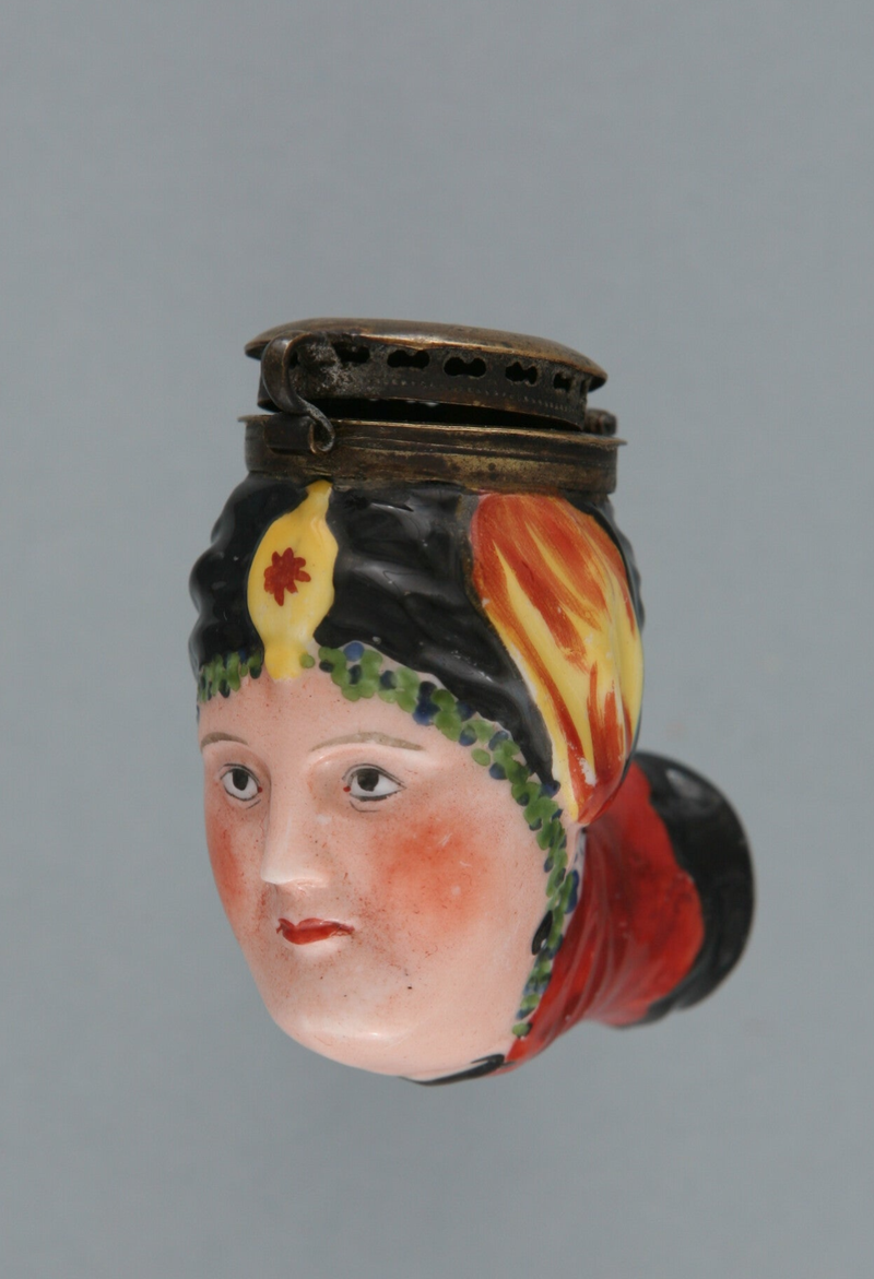 Description: Portrait bowl modelled as the head of a Turkish girl.